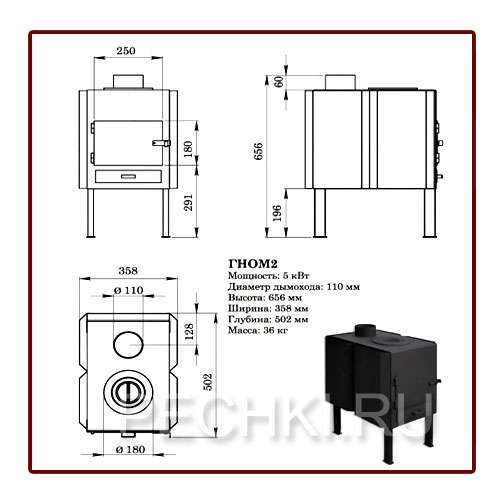 "Мал - да, удал!" - безусловно это выражение применимо к данной серии отопительных печей. Всем знакомая, горячая и любимая буржуйка. До сих пор многие консерваторы и скептики считают отопительные печи от МЕТА, типа буржуйка, самыми лучшими. А большенство садовых домов отапливаются именно такими печами. И действительно! ГНОМ не занимает много места, чрезвычайно прост в обслуживании, а при всем при этом дает 5 (!) кВт мощного обогрева, справляющегося с холодом в доме до 60-70 м, что ставит печь ГНОМ на одну ступень с небольшими чугунными печами. Особенно приятно отметить, цены на печи ГНОМ при этом по карману любому. Отопительная печь ГНОМ 2 не только согреет, но и даст возможность приготовить, подогреть, поддерживать температуру. Благодаря близкому расположению съемномного варочного чугунного